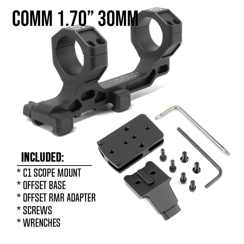 The Badger C1 COMM Mount 30mm tube scpoe mount offers precision and durability for optimal optic installation. Optional heights 1.54″/1.7″/1.93″
